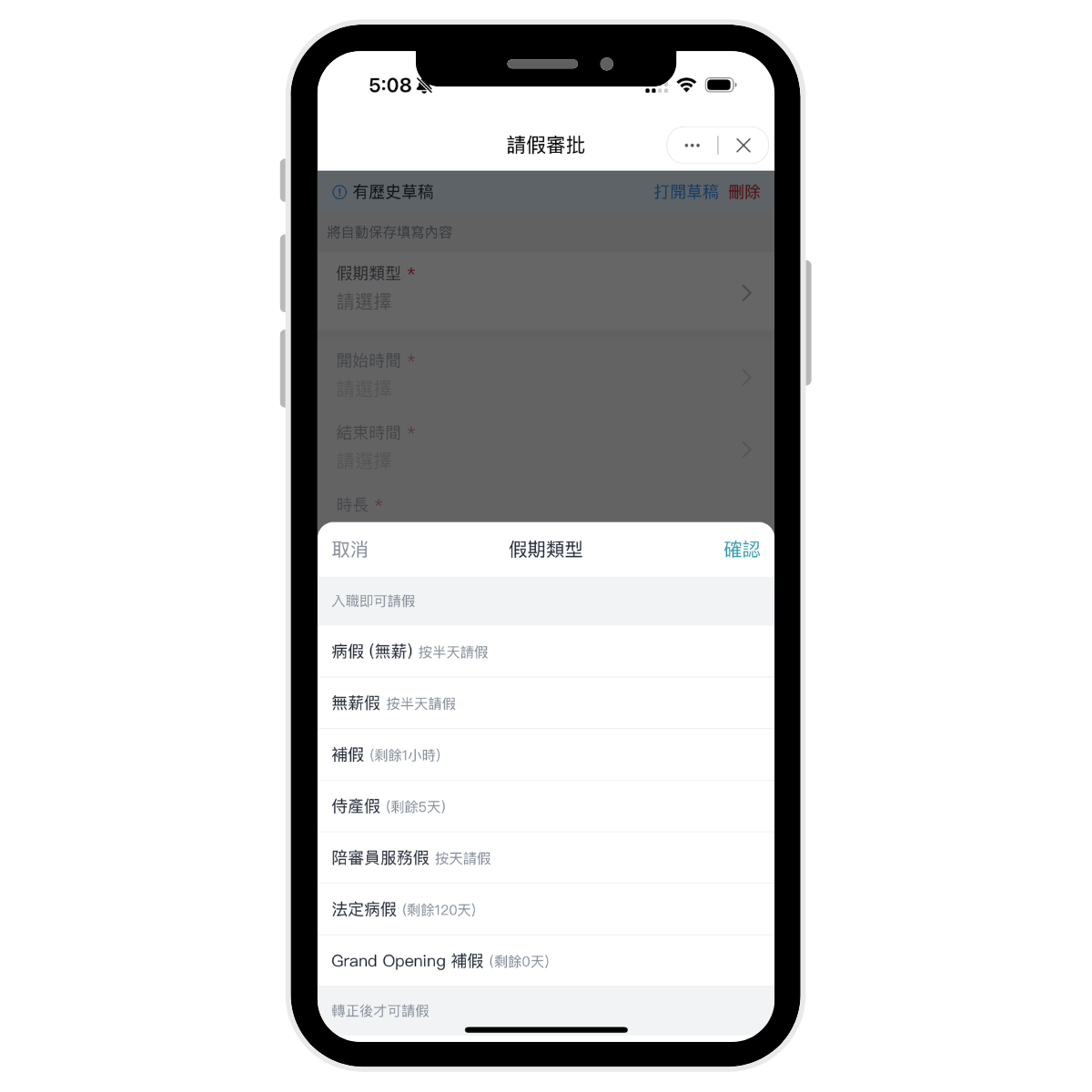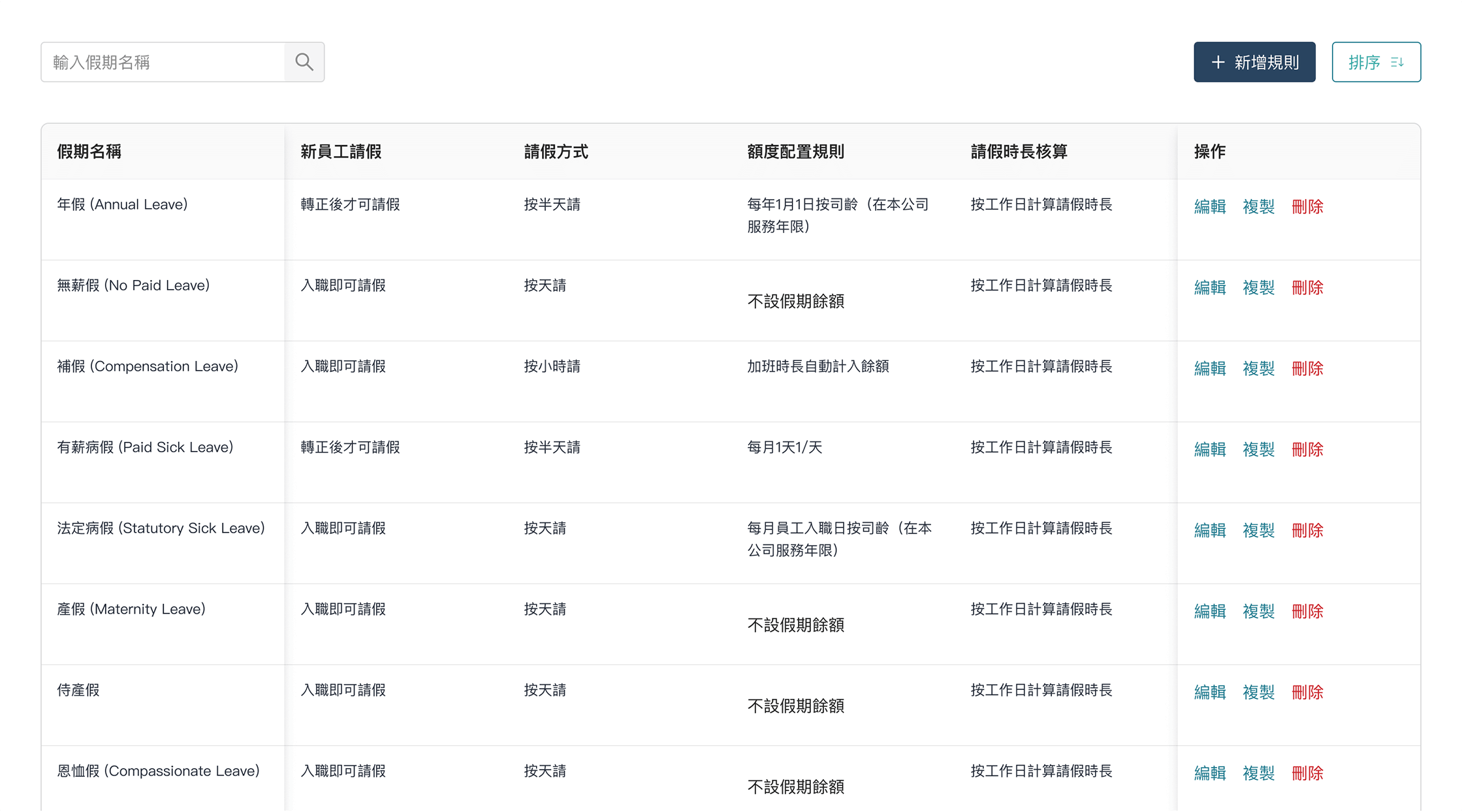 員工可於手機 App 查看假期餘額、申請假期及查看審批進度。系統亦可自設假期類別、發放規則及清零提醒等。