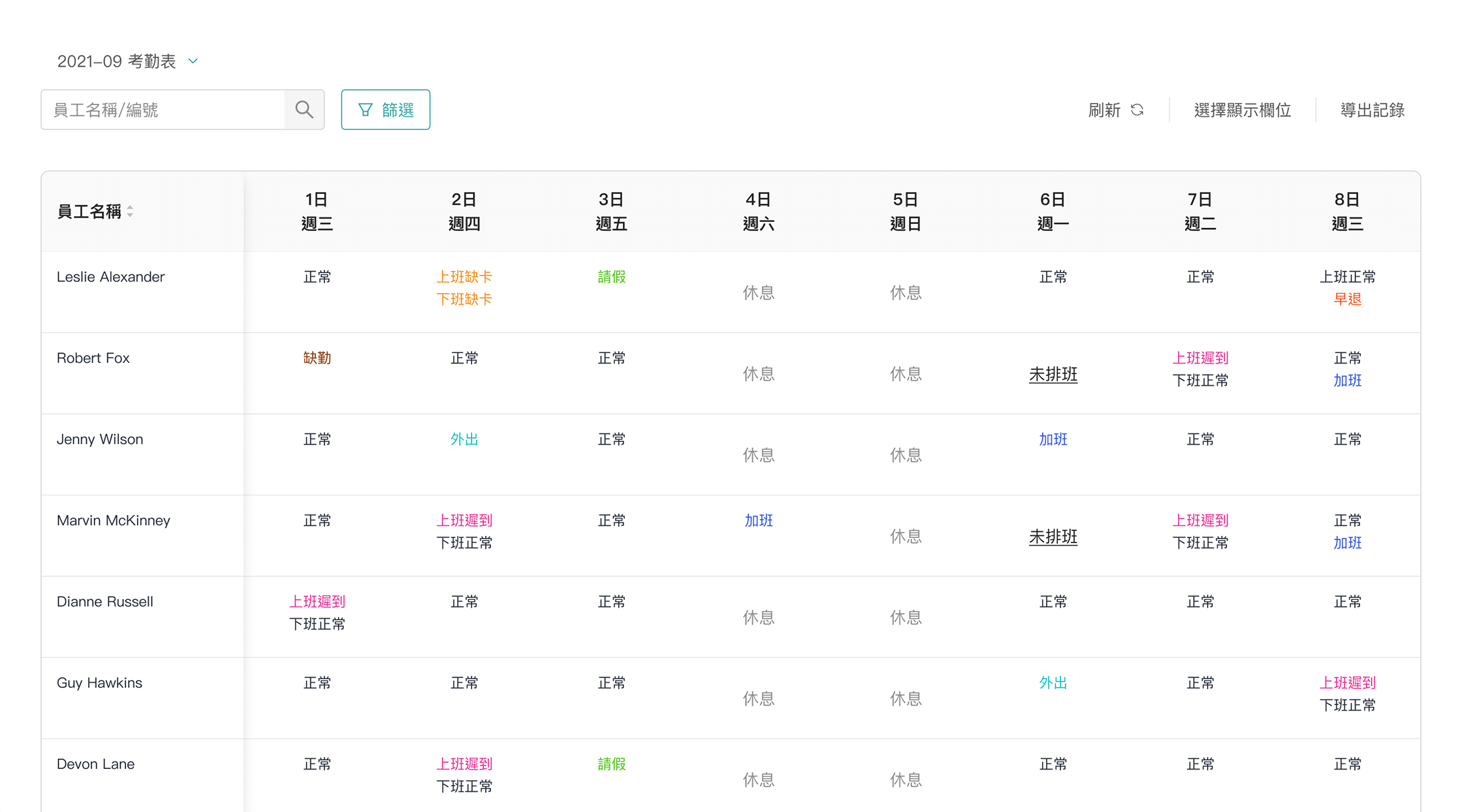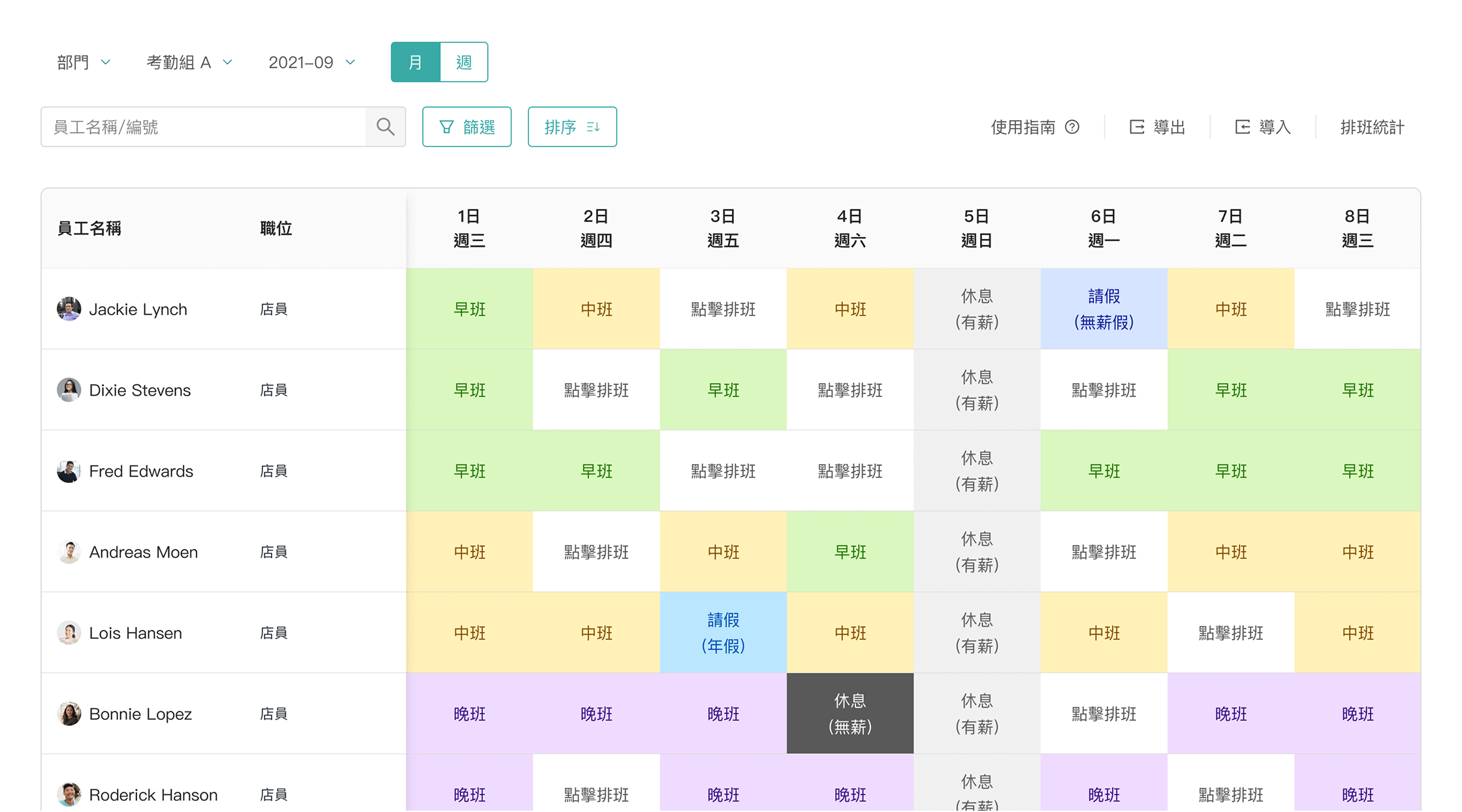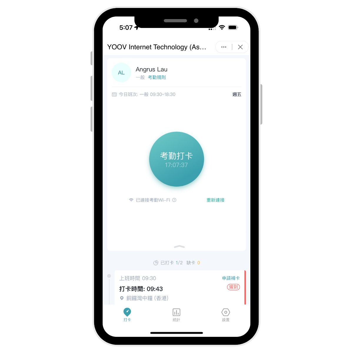 支援多種打卡方式如 人面識辨、Wi-Fi 、GPS、QR二維碼 等,遲到、早退、請假等考勤資訊實時記錄,薪金假期自動按照自設之考勤規則計算,並可輸出各類考勤統計報表。